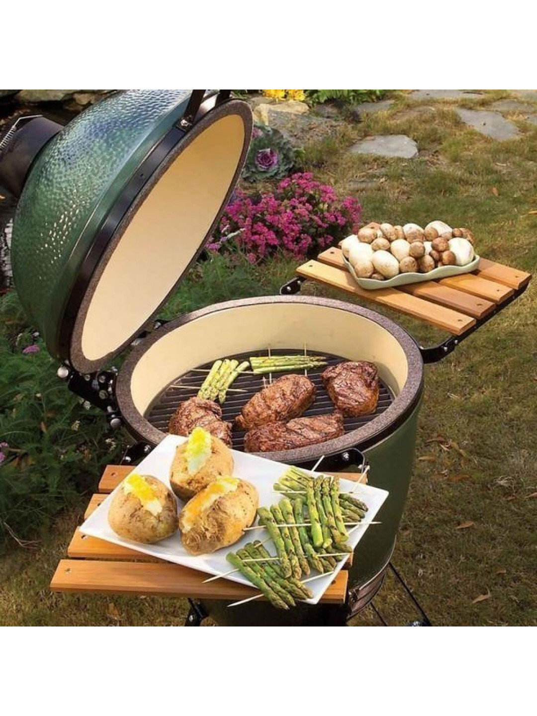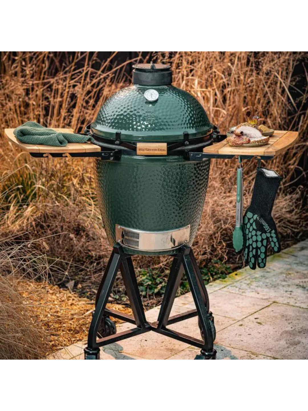 Комплект Big Green Egg Medium на современном этапе становится популярным угольным грилем, что связано с заселением пригородов крупных городов, в которых довольно много таунхаусов с маленьким задним двориком. В таких исходных данных Big Green Egg Medium комплект становиться идеальным решением. Данное барбекю не занимает много места, довольно легко перемещается даже в одиночку и накормить свою семью не составит проблем. Диаметр решётки Big Green Egg M комплект составляет 380 мм, поэтому курочку целиком можно приготовить, а вот индейку уже не выйдет. Из ряда аксессуаров для Big Green Egg M комплект отсутствуют только многоуровневые решётки, а остальные аксессуары для данного размера барбекю есть. Если Вы проживаете в таунхаусе или квартире с террасой, то Биг Грин Эгг М комплект идеально подойдет под такие условия эксплуатации.