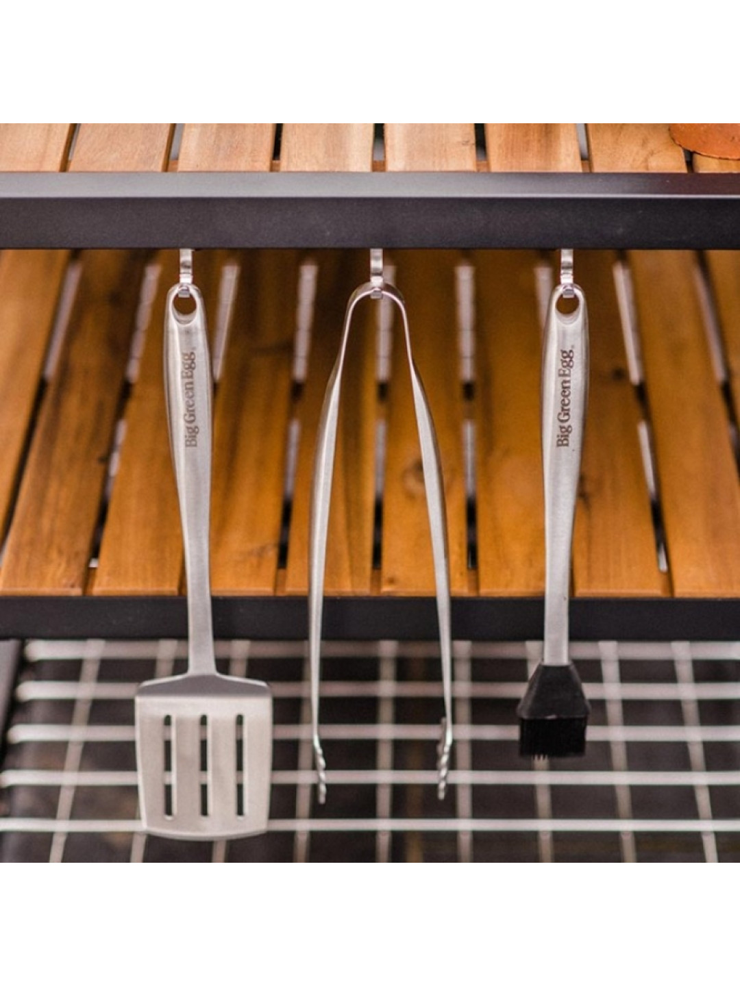 Крючки для стола Big Green Egg стандартизированы - впишутся в верхнюю раму и нижнюю раму полки. Крючки для стола Big Green Egg будут очень полезны при готовке на гриле.