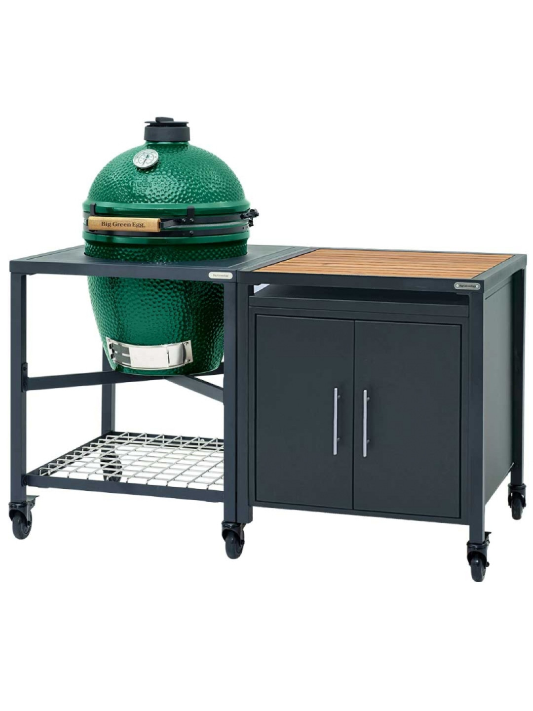 Модульный стол с дверцей Big Green Egg доукомлектовывается отдельной крышкой на Ваш выбор. Так же Модульный стол с дверцей Big Green Egg оборудован четырьмя регулируемыми ножками, для легкого выравнивания модуля на поверхности. Ножки и рама Модульный стол с дверцами Big Green Egg изготовлены из алюминия с порошковым покрытием и стали.
