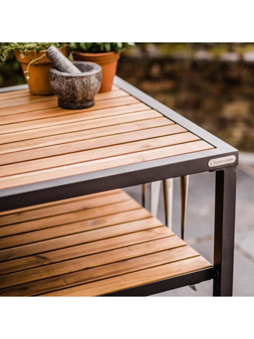 Полка из акации для стола Big Green Egg предназначена для наружного использования с использованием деревянных реек и оцинкованных винтов.