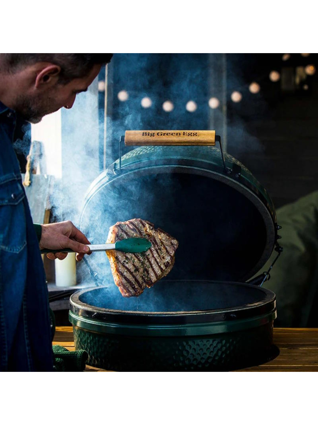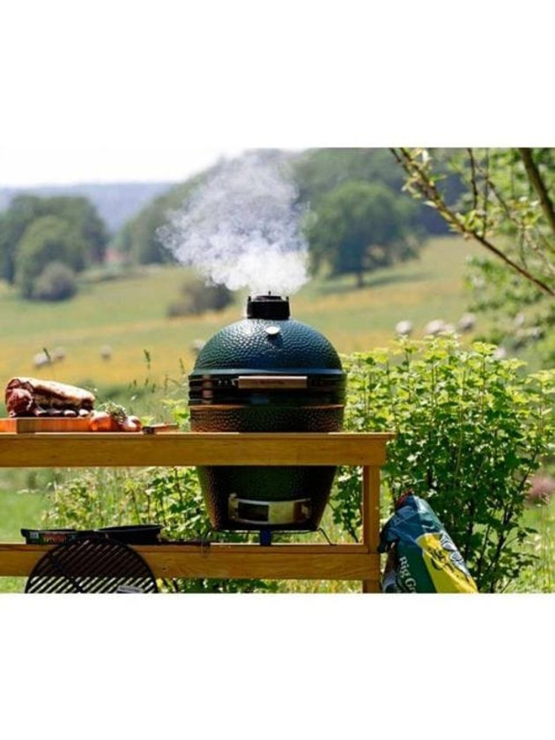 Корпус із високоякісної кераміки забезпечує довговічність та економний витрат вугілля, а фірмова форма купола Big Green Egg підтримує природну циркуляцію повітря та рівномірне приготування.