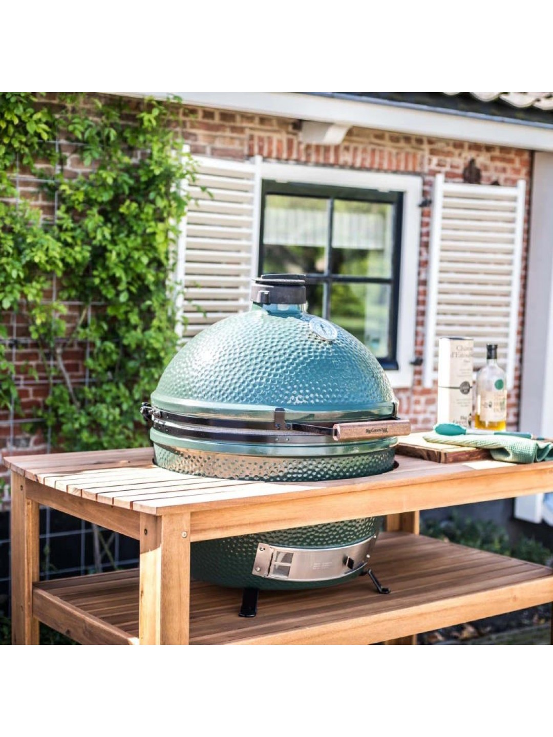 Big Green Egg XLarge – це універсальний керамічний гриль преміум-класу, створений для тих, хто готує по-справжньому та цінує смак, масштаб та стиль. Ця модель ідеально підійде тим, хто любить збирати велику компанію, влаштовувати вечори на терасі або готувати для гостей ресторанного рівня. Діаметр решітки 61 см забезпечує величезну площу для приготування та дозволяє з легкістю розмістити кілька стейків, ребер, курей або цілу індичку.