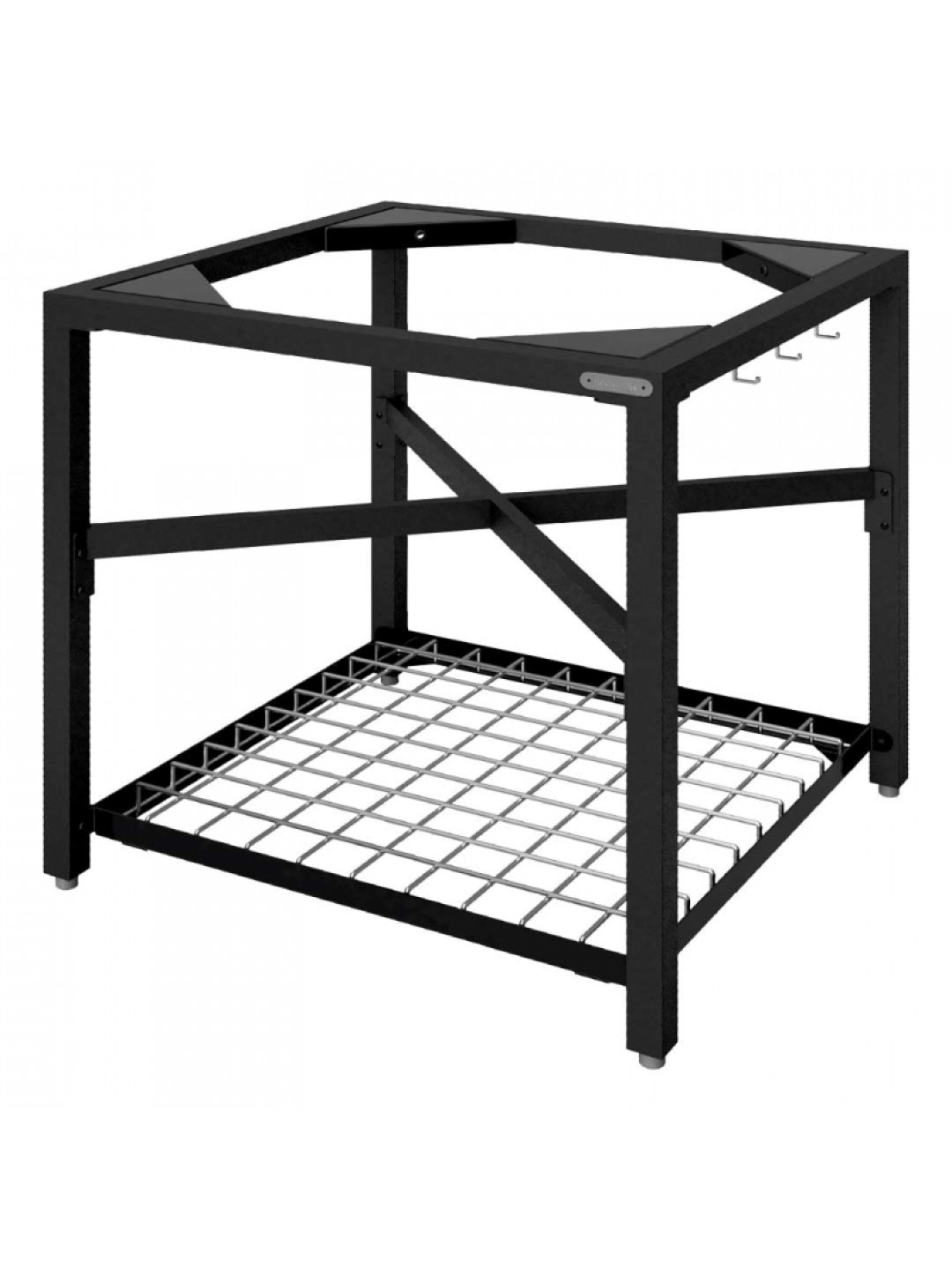 Каркас столу гриля Big Green Egg XL базовий модуль включає в себе: металеву підставку, обладнану спеціальними обмежувачами, які надійно фіксують гриль в центрі конструкції, полку-сітку з нержавіючої сталі, на яку можна покласти різні аксесуари для приготування, або вугілля. Так само Каркас столу гриля Big Green Egg XL обладнаний гачками для приладдя і чотирма регульованими ніжками, для легкого вирівнювання модуля на поверхні. Ніжки і рама Каркас столу гриля Big Green Egg XL виготовлені з алюмінію з порошковим покриттям і стали.