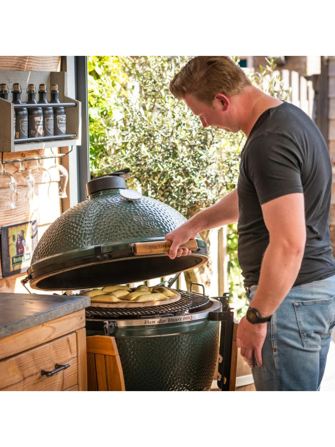 Комплект Big Green Egg XL, напевно, найбажаніший подарунок у світі. По-перше, це великий вугільний гриль, а значить річ статусна, і по-друге, це повністю готовий до роботи комплект барбекю. Big Green Egg XL комплект можна подарувати другу, родичу, бізнес-партнеру або чиновнику. Велике Зелене Яйце ХЛ з діаметром ґрат в 610 мм дозволяє готувати практично без обмежень: молочне порося, бараняча нога, величезна індичка – залітають у вугільний гриль без проблем. Ледве не забув, Big Green Egg XL комплект часто беруть собі ресторани або заклади громадського харчування з літньою терасою, що додає колориту закладу та розширює список смачних, швидких та корисних страв. Наприклад, одночасне замовлення на 15 стейків – не проблема, барбекю ХЛ упорається з цим. Виходячи з перерахованого вище робимо висновок, що Велике Зелене Яйце ХЛ комплект розраховано для приготування на компанію 10 чоловік та більше.