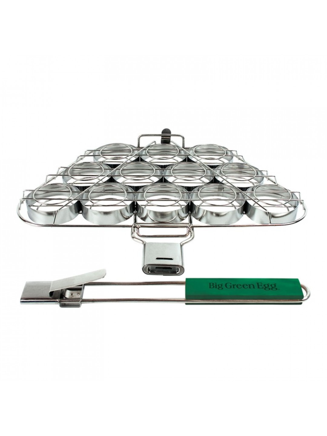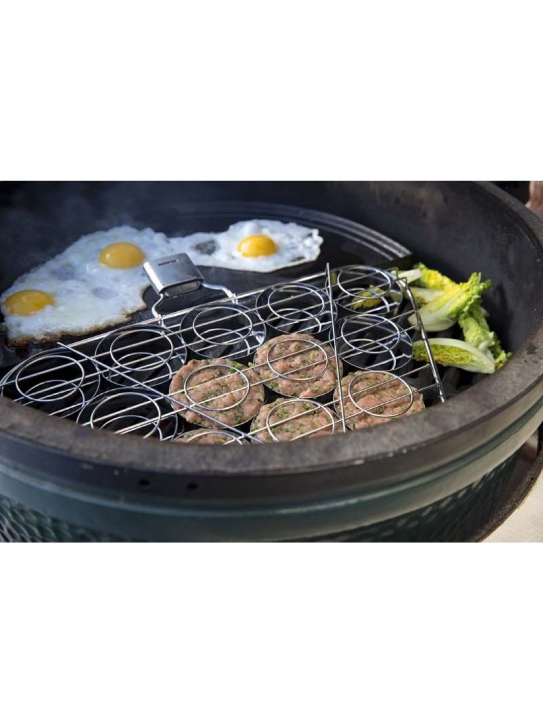 Напівкругла сітка для бургерів Big Green Egg з високоякісної нержавіючої сталі, призначена спеціально для використання в грилях Big Green Egg. Знімна ручка дозволяє помістити напівкругла сітка для бургерів Big Green Egg всередину гриля цілком і готувати під закритою кришкою. Ручка напівкругла сітка для бургерів Big Green Egg зроблена з дерева, вона не нагрівається, можна безпечно перевертати і знімати сітку.