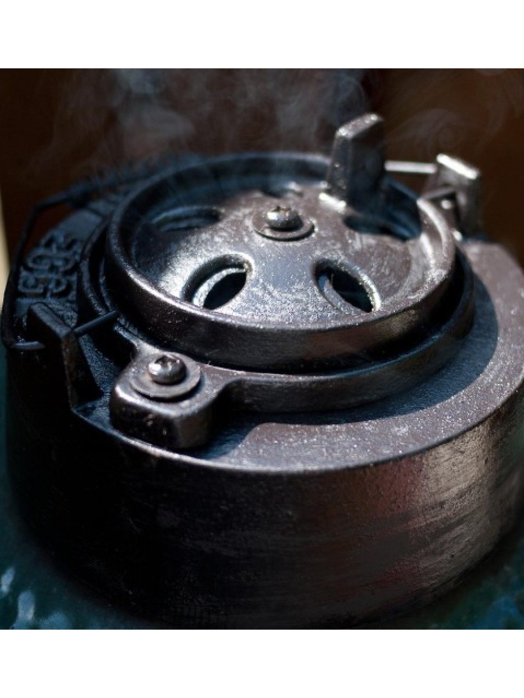 Регулятор тяги Big Green Egg Mini - чавунна кришка, що знімається, виступає в ролі регулятора тяги.